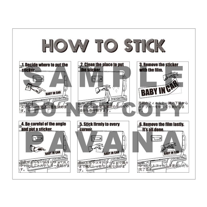 "HOW TO STICK" 貼り方の手順書も付属しています。